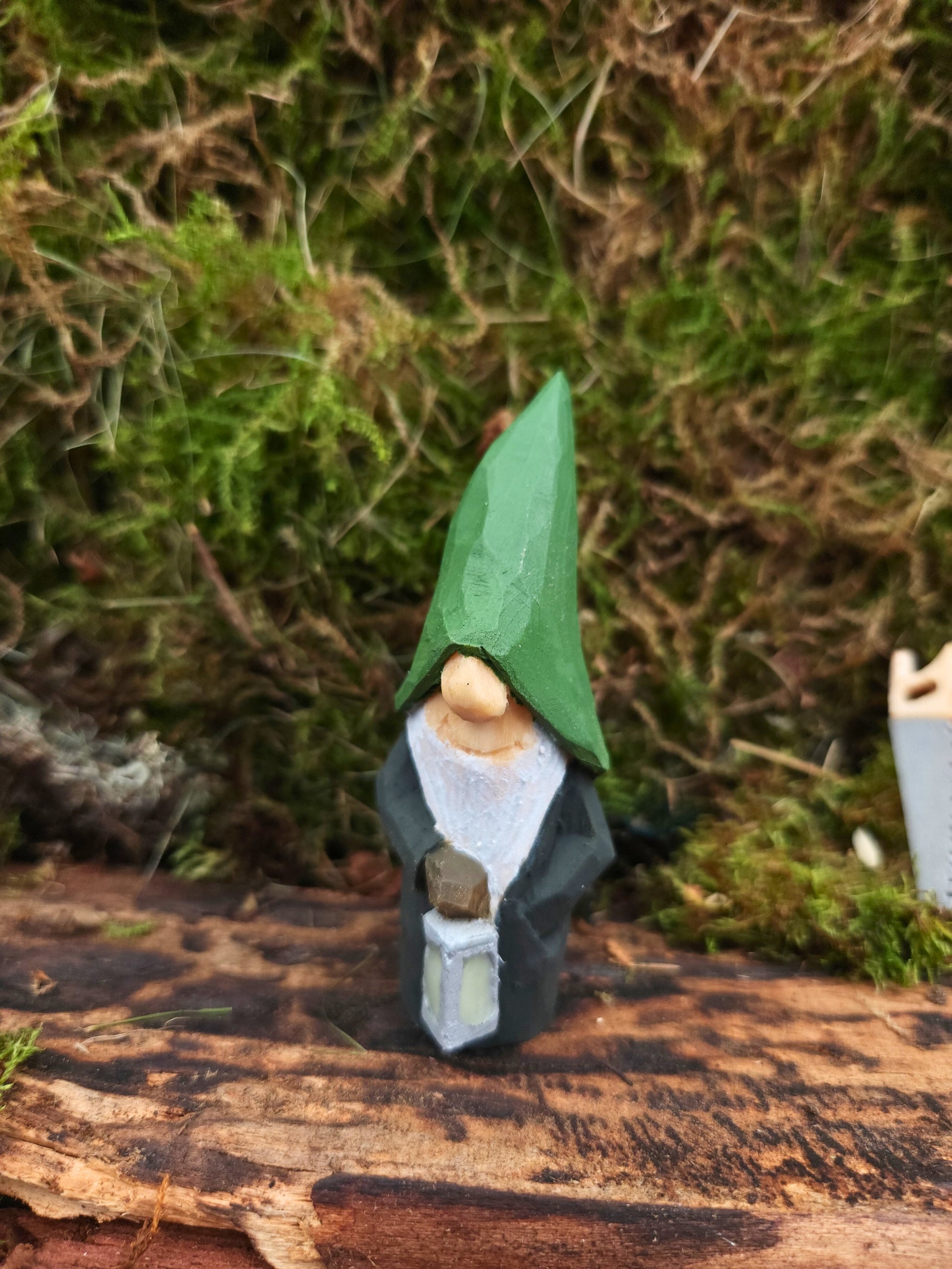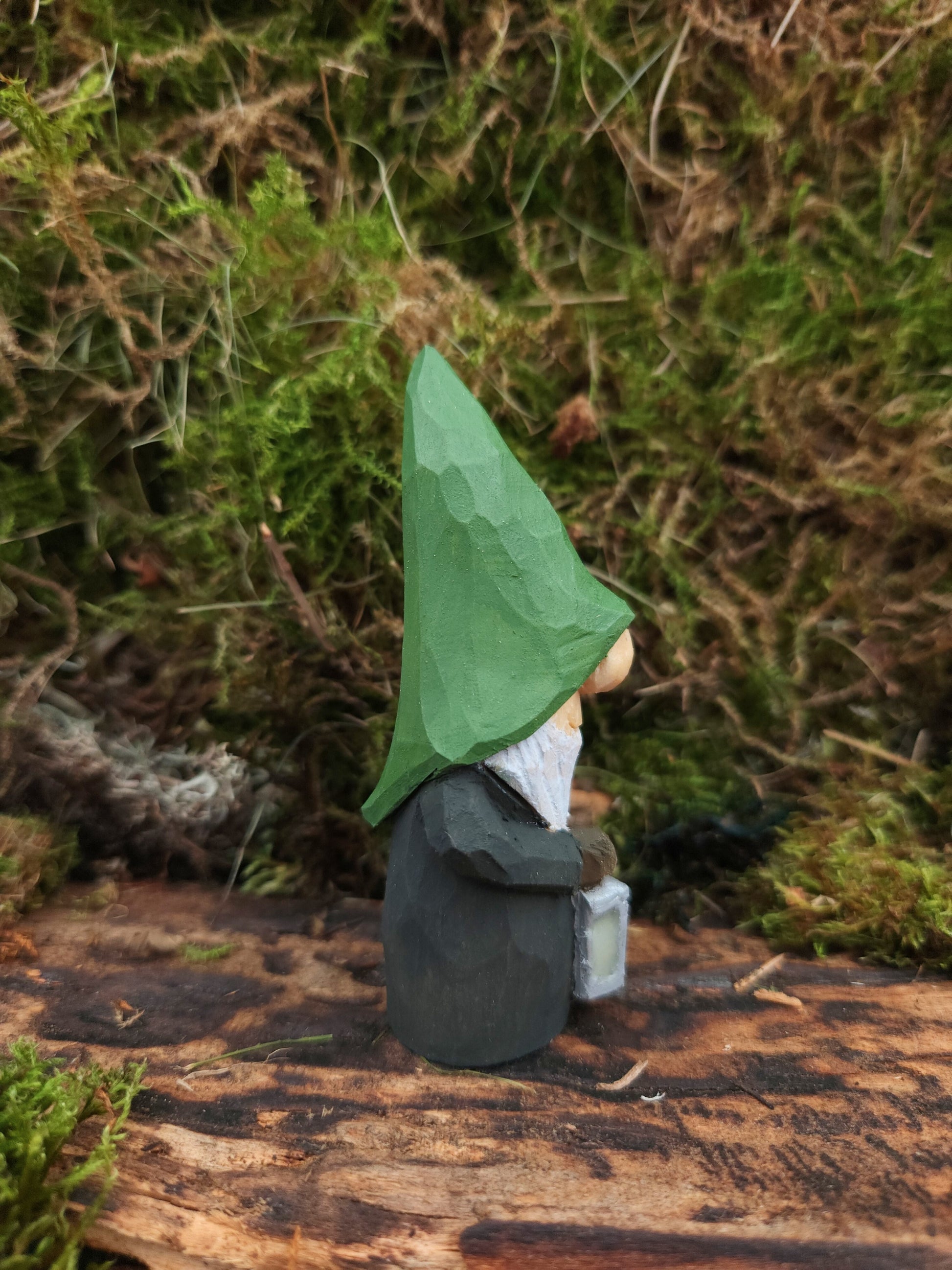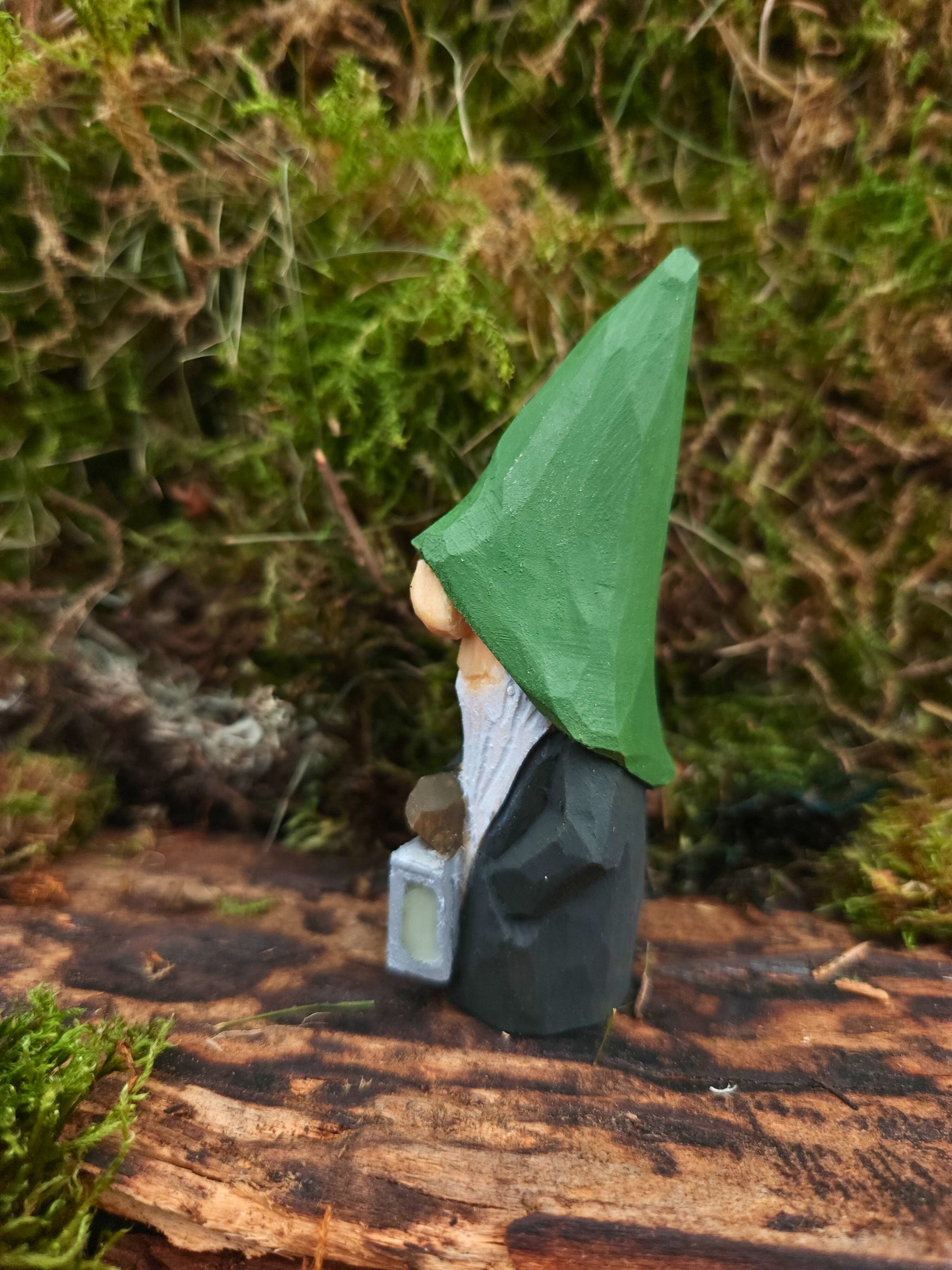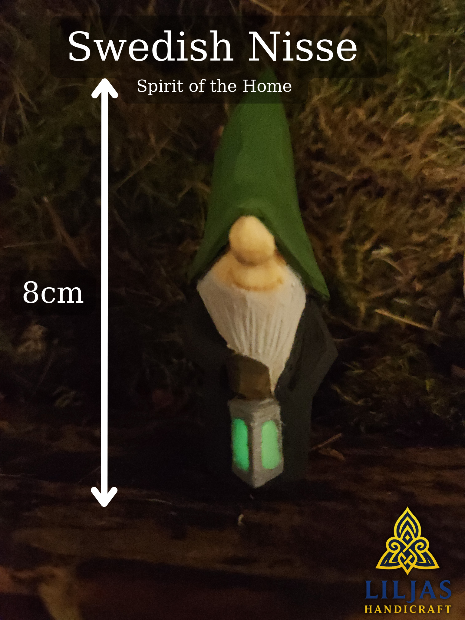 I nordisk folklore sägs Nissen vaka över gården, sprida trygghet och hålla mörkret borta. Denna handtällda Nisse bär en lykta framför sig – en liten ljusglimt som aldrig slocknar.